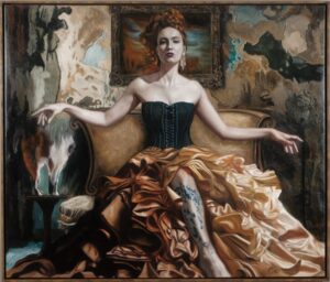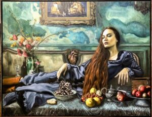 Der Stil des Tirolers aus Wien: Im Zentrum seiner Großformate stehen oft Figuren, die ruhen – in Sesseln, in Räumen, im eigenen Inneren. Büchel: „Und doch bewegt sich alles. Ein Luftzug hebt die Stoffe an, eine Kerze flackert, Schmetterlinge gleiten durch das Bild. Als würde die Welt zwischen den Pinselstrichen heimlich weiteratmen.“